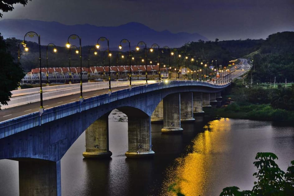 宏伟壮观的玲珑拉班湖拉惹纳斯林莎大桥在灯光照耀下,璀璨耀眼,景色迷人。