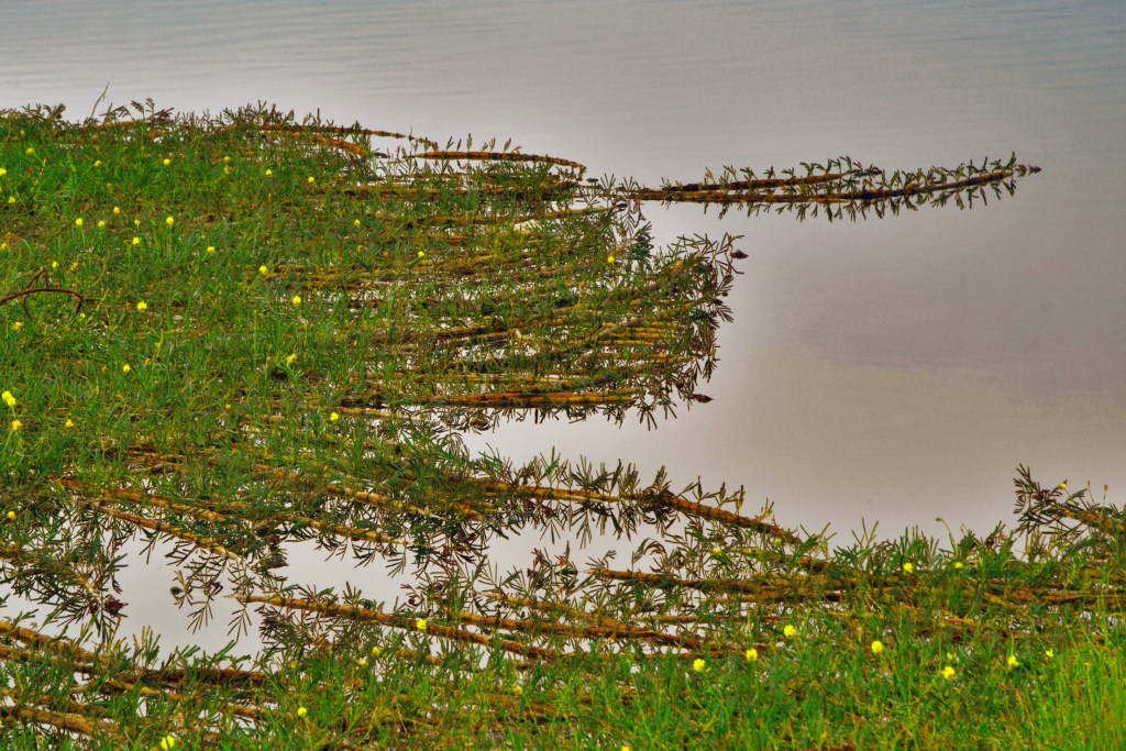 湖边水草与湖中菹草,在蔚蓝湖水衬托下,有另一种美!