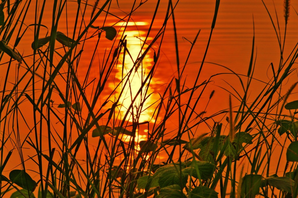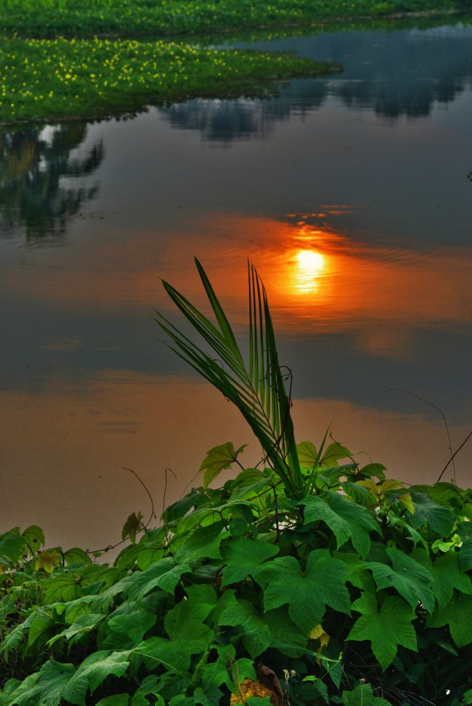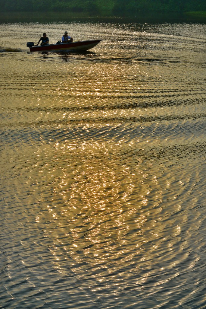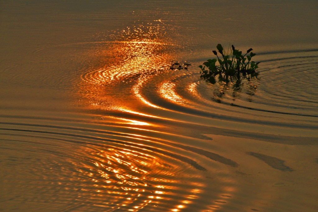 旭日照耀湖面,霞光瑰丽 ,显得金光耀目!