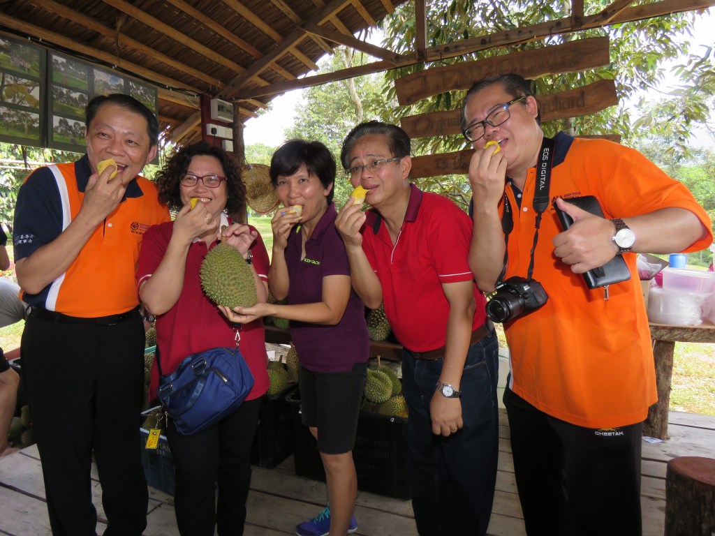 他说,为了让他的生态榴槤园水果变得多样化,他的有机榴槤园除了以各种有机名种榴槤为主之外,在一年半前他也在现有的榴槤园种植了20多棵尖不叻树,有10多次高。另外种有4、5棵红毛丹树,已5尺高;种有6、7棵山竹树,4尺高,都是一年多树龄。此外,在购买的那段油棕园地已有6、7棵龙贡果树。再多约两年,一旦尖不叻、红毛丹、山竹和龙贡果树有水果出产,这些水果将免费让食客和饕客自采品尝,只有各种有机名种榴槤以市价售卖给顾客和旅客,让他们体验自采水果品尝的乐趣!