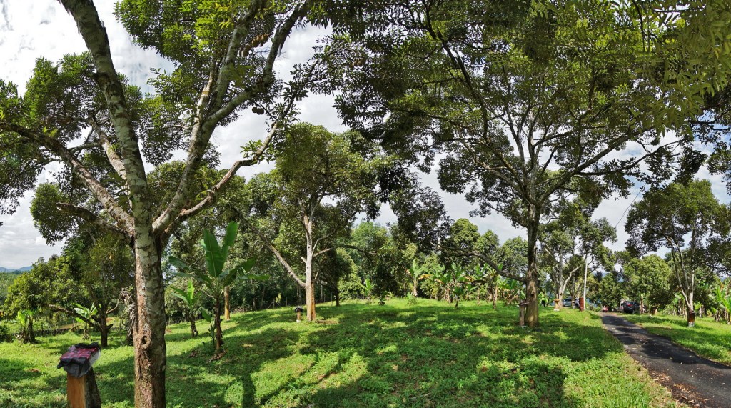 梁汉文也是有机榴槤园主,他有数段芭地,分别种植有机猫山王、有机黑刺和其他名种榴槤,包括以前他父亲种植的泰国名种榴槤和甘榜榴槤。