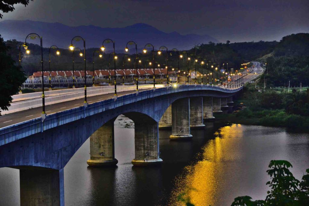 他说,秀丽的拉班湖,建有一座横跨湖泊,宏伟壮观的拉惹纳斯林沙大桥。夜幕低垂,大桥灯光大放异彩,形成一幅美丽景色!