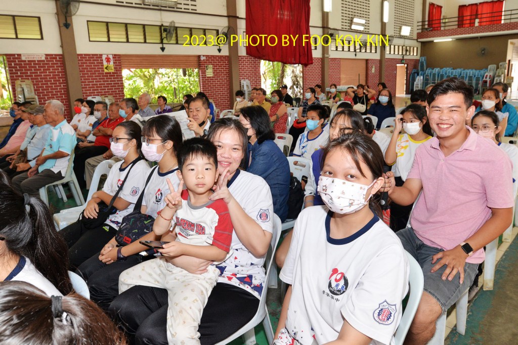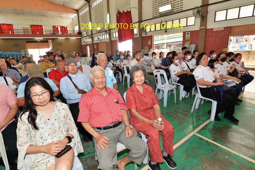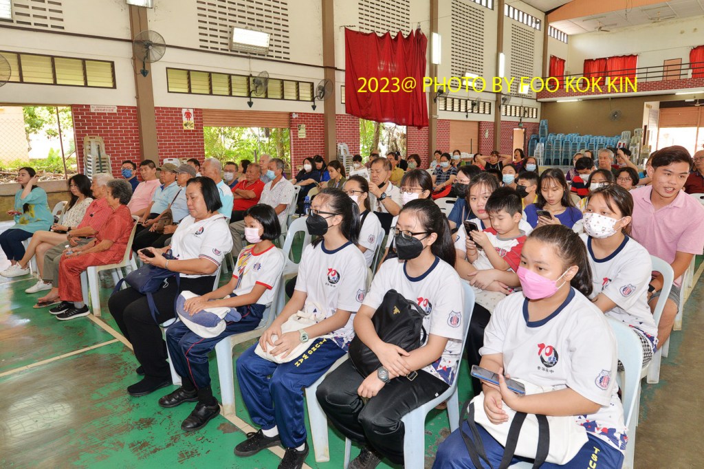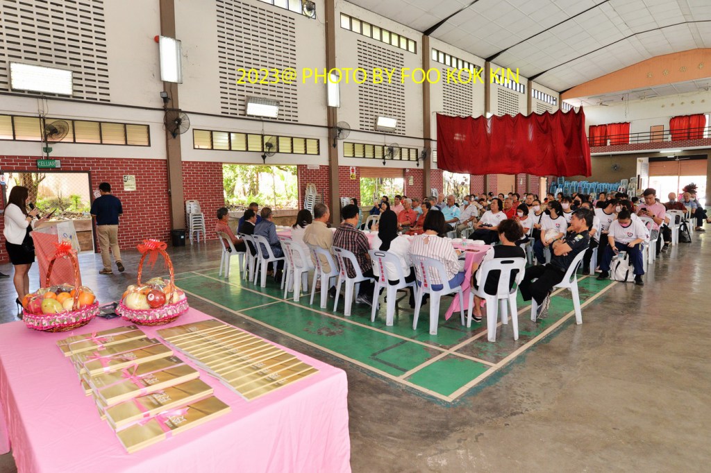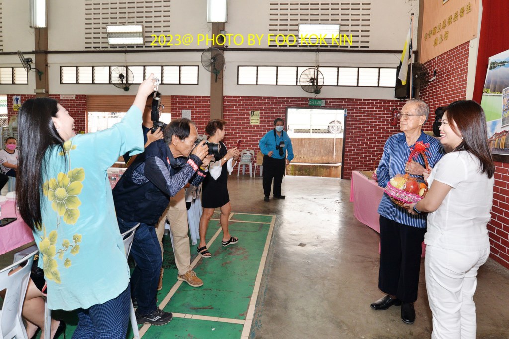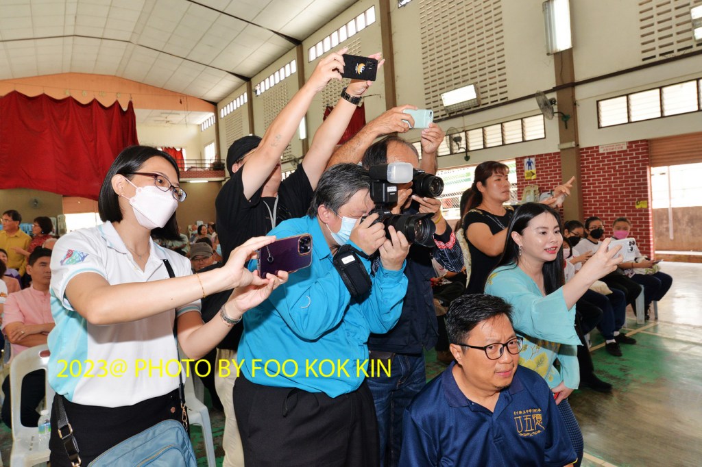 江沙崇华国民型华文中学、江沙崇华独立中学、万里旺升旗山中学前校长庞亚九与玲珑县6所华文小学正副校长与学生获赠新书后大合照。