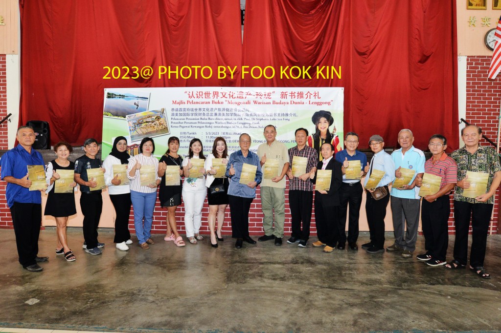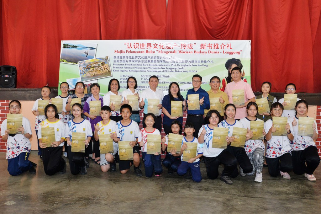 陆秀凤教授与梁诗丽博士赠送新书给霹雳玲珑世界文化遗产旅游促进协会全体理事和玲珑华团代表之后大合照。